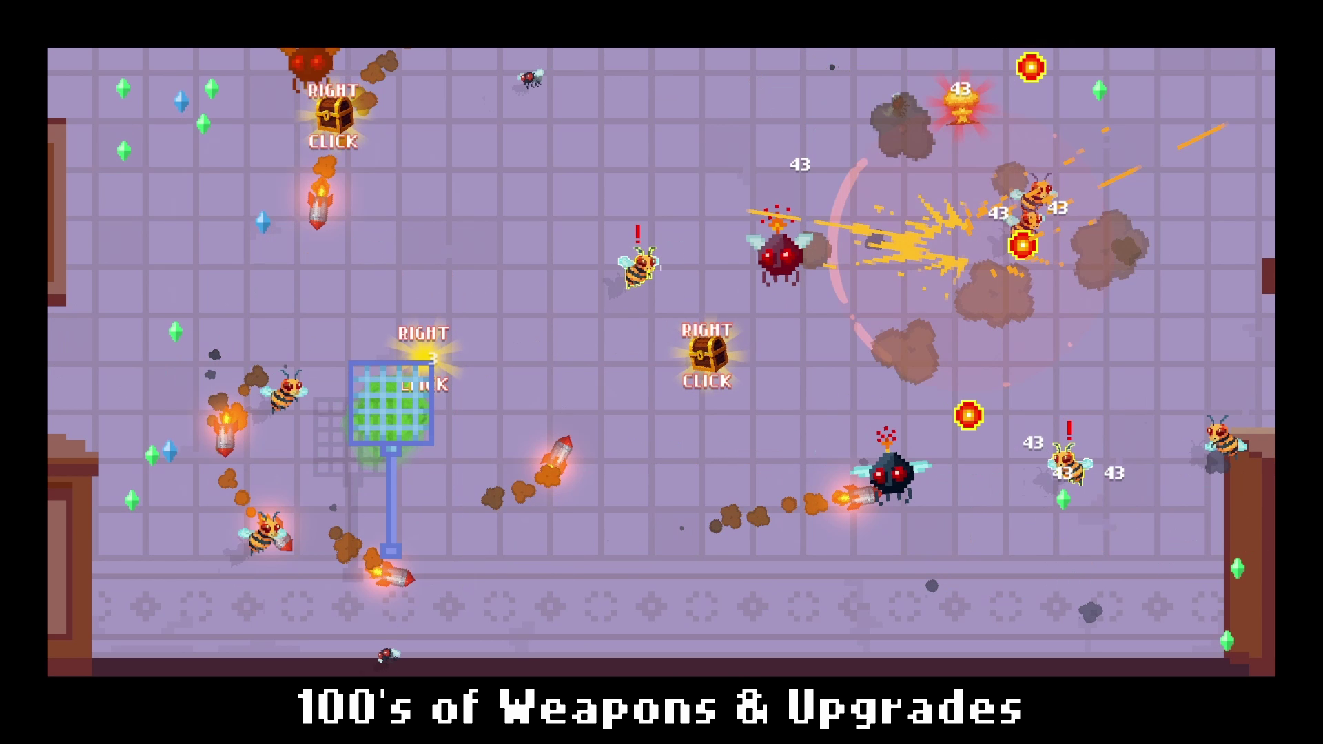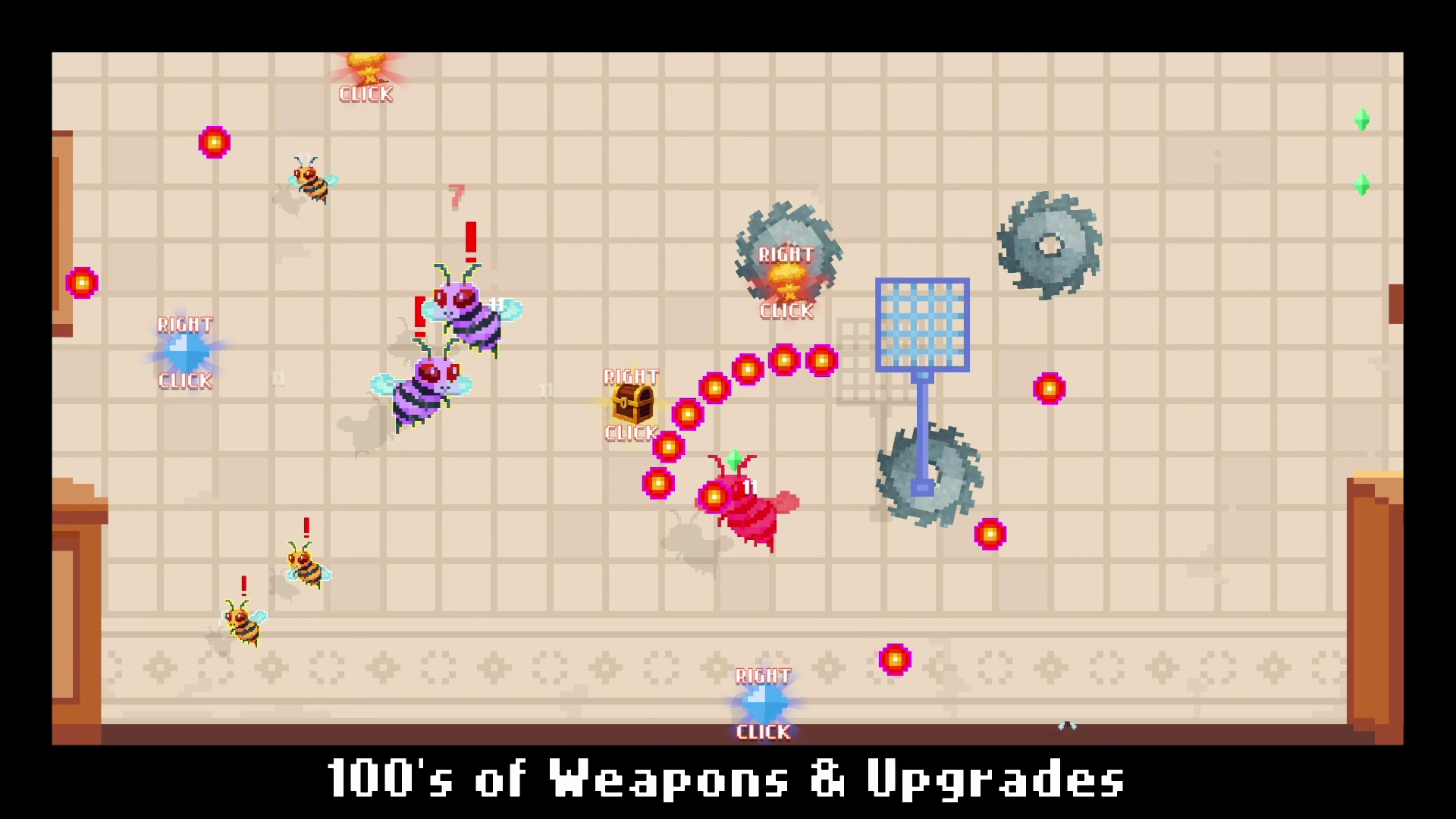 Your mouse is your weapon in this Bullet Heaven Roguelike loaded with crazy weapons, items and upgrades! Now go spank some bugs 🎾 🐝